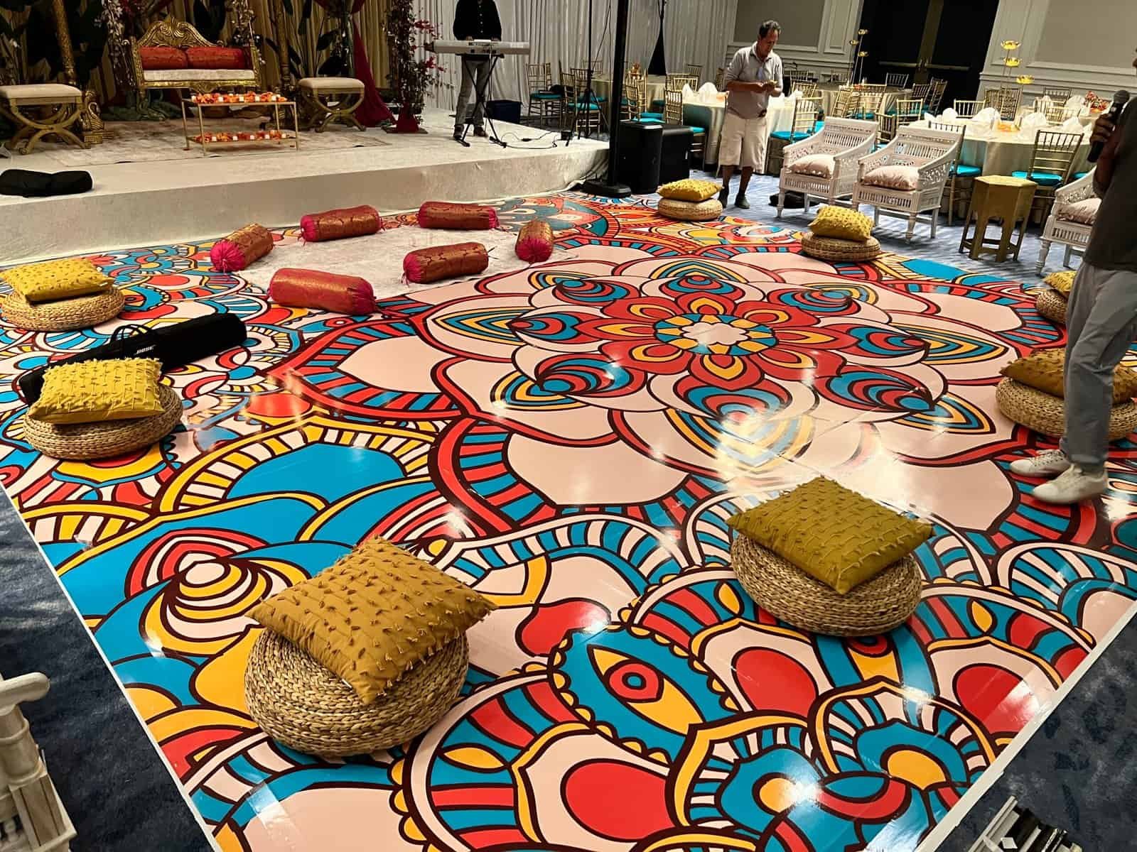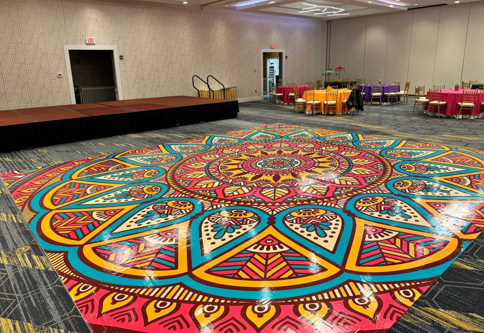 Custom Decal Dance Floor Wrap Gloss Removable Vinyl Indian Sangeet Ceremony Wedding Mehdi Mandala Full Color Print – Custom Decal Floor Wrap