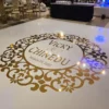 Custom Decal Dance Floor Wrap Gloss White Removable Vinyl with Printed Mandala Mehdi Logo Design in The Center – Wedding Sticker Print Wrap