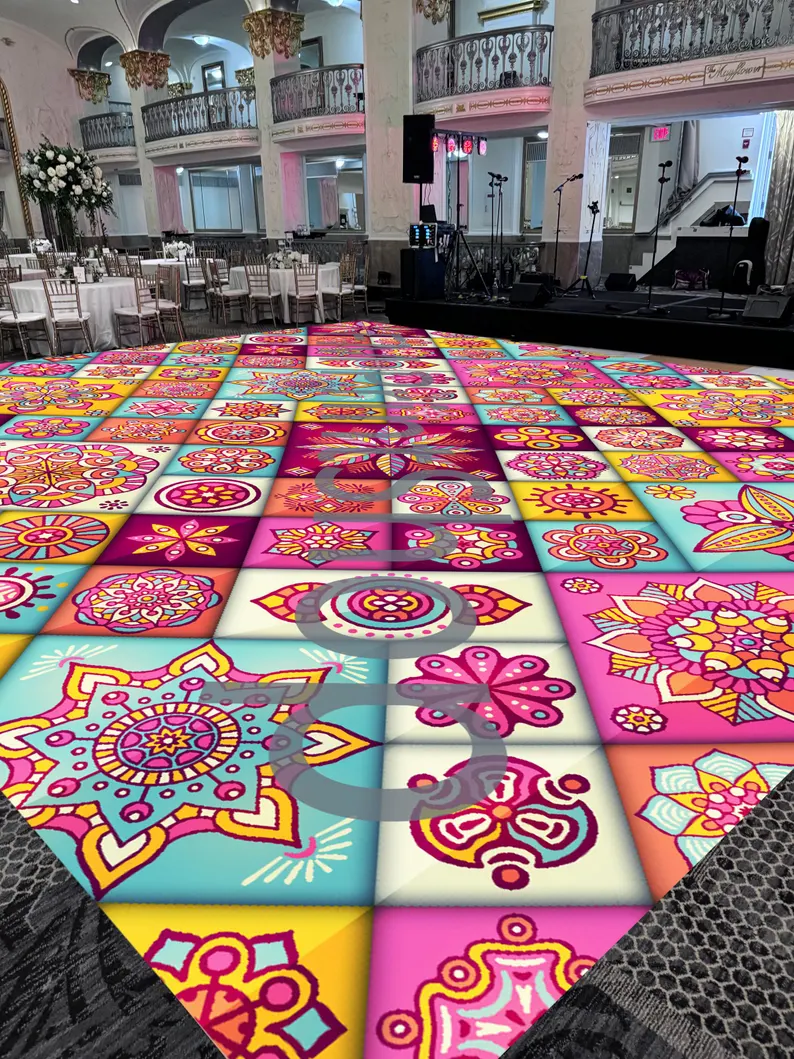 Mandala Sangeet Ceremony Floor Wrap | Custom Indian Wedding Dance Floor Vinyl | Removable Gloss Decal for Mehndi & Traditional Celebrations
